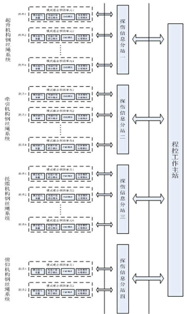 該系統分為模式組合探測單元、探傷信息分站和程控工作主站(設險情狀態預報警機制)三大部分,各部分均定點安裝。