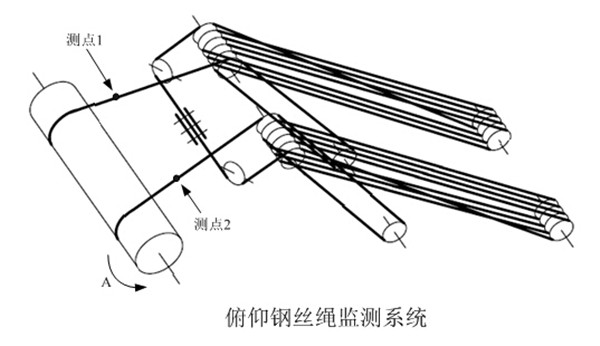 俯仰鋼絲繩系統共布置了2個測點,示意圖如下: