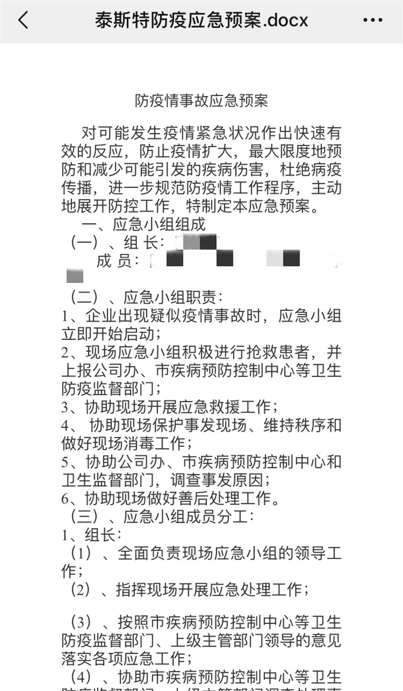 (1)泰斯特公司制定復工生產實施方案、應急方案、疫情防控工作方案等,確保嚴格落實、全面防控。