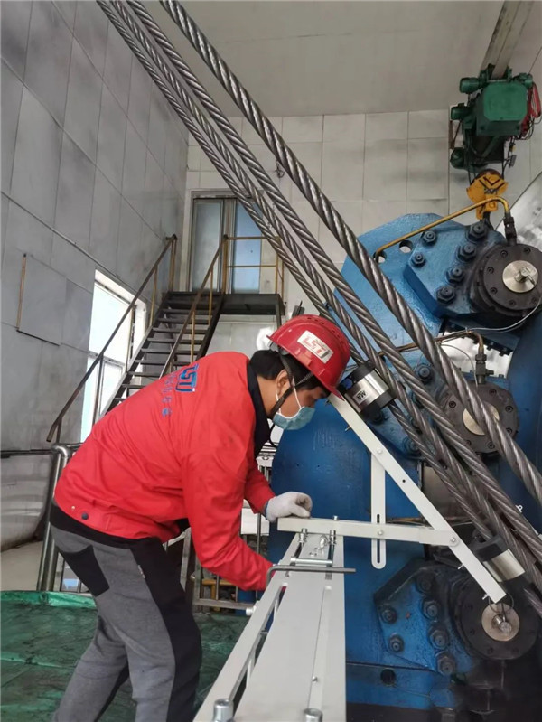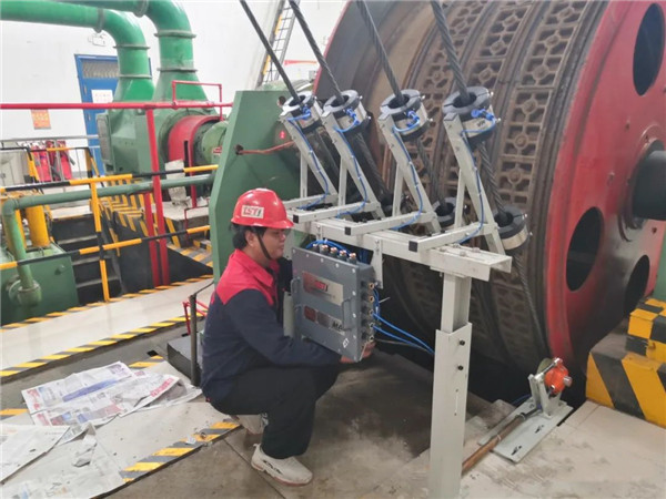 山西的安裝現場,工程師盛俊濤和李朋朋倆人相互配合順利的完成了一臺四繩提升機鋼絲繩檢測系統的安裝,現場培訓系統操作方法。